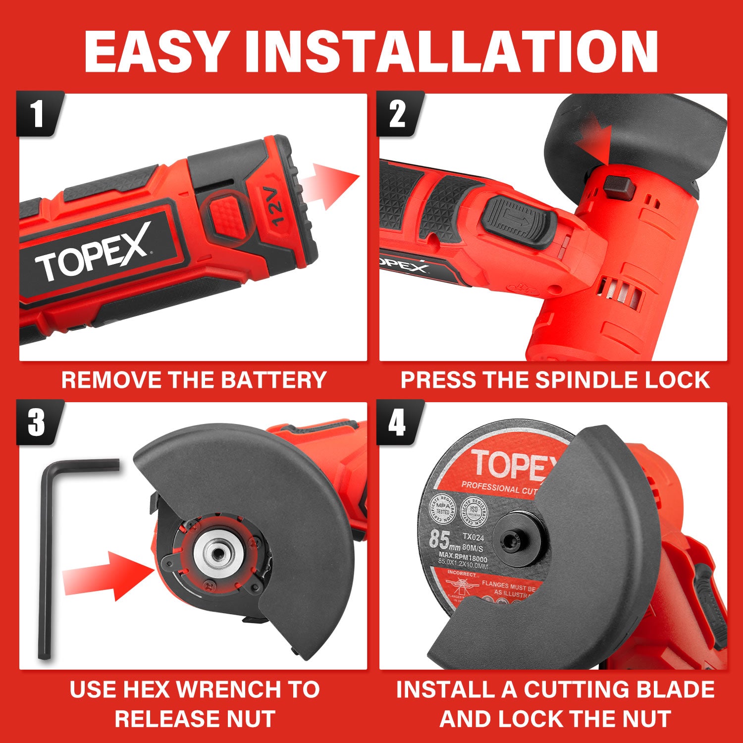 The 12V Cordless Angle Grinder is designed for grinding, cutting, brushing, and polishing jobs on metal, stone, concrete blocks, and tiles, which has no load speed of 12000-19500 rpm. With the Cordless Angle Grinder, you are equipped to handle for different application. The most of important is it have plenty enough torque, speeds up the process and your hands don't get sore. Looks so sleeker yet works so effectively.