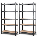 - [Upgrade Materia] This is not only designed with a much thicker MDFÂ and black spray for durability to withstand water damage but also looks great and feels soft to the touch. Plus, it's easy to manage - if any contaminants get on the surface, simply remove them without any pesky stains or seepage.<>[Heavy Duty & Sturdy] This 5-tier steel shelving unit is made of quality MDF boards, of which maximum load is 175kg per shelf.<>[Easy to Assemble] With our product, you can assemble it yourself in just 20 minutes without any bolts or nuts. Simply slide and fix the frame into the post hole by lightly pressing it. It's so easy, you can even do it with your bare hands!<>[Versatile Multipurpose Shelves] You can not only use a standing shelving unit vertically, but also freely convert it into horizontal two Modules such as a workbench. It will help you to create and enlarge more additional space because this shelves show off the best storage efficiency with minimal space.