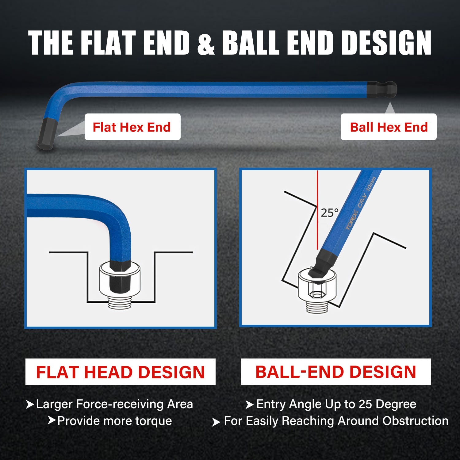 - [BALL END DESIGN] Designed with a ball end to access socket cap screws up to a 25Degrees entry angle, allowing easier access to those hard-to-reach places.