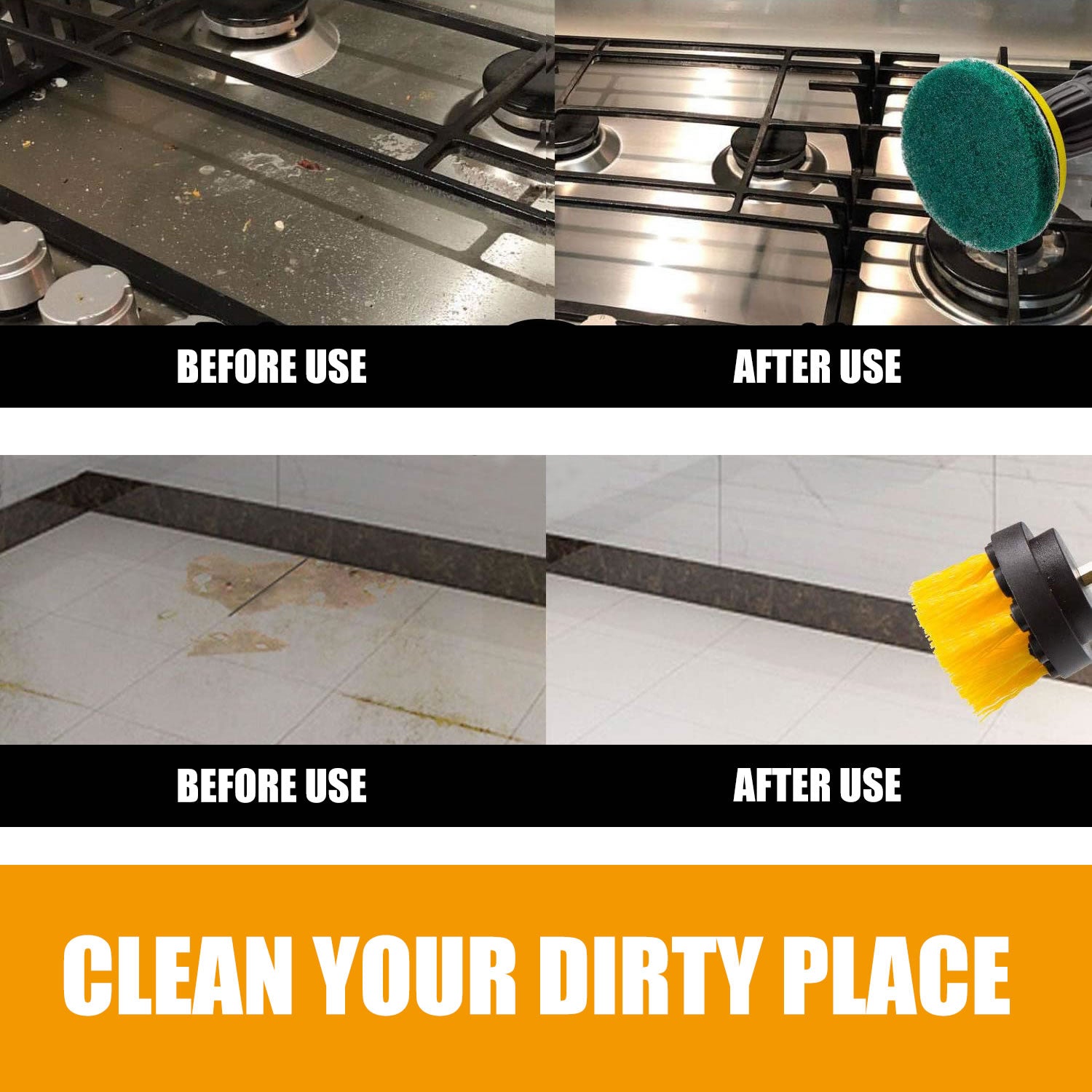 • Easy Operate & Save Time C Get tired of the boring household cleaning? Try Drill Brush Cleaning brushes and Scouring Pads that attach to any cordless drill or impact driver, to become a powerful cleaning tool. Get stubborn cleaning jobs done faster and achieve a deeper clean, definitely a good partner for your household cleaning.