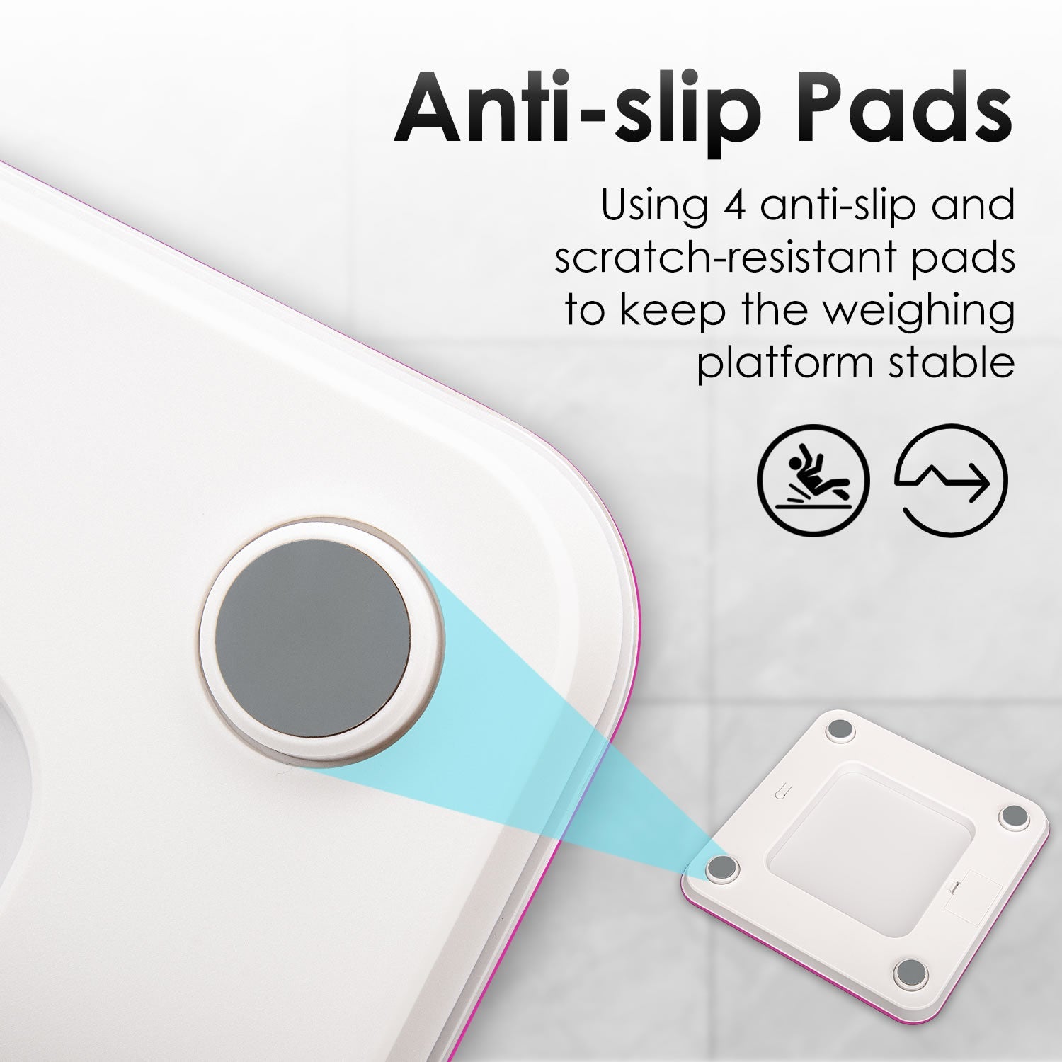 - [14 BODY COMPOSITION DATA ANALYSE] Monika Smart Body Fat Analyzer uses Bio-electrical Impedance Analysis (BIA) technology and monitors 14 important body compositions for tracking health -- Weight, muscle rate, muscle mass, body fat percent, bone, protein, fat-free body weight, BMI, subcutaneous fat, visceral fat, skeletal muscle, water composition, metabolic age and BMR (Basal metabolic rate). DO NOT let the sides of the scale, especially the four corners of the surface tempered glass hit any object, and it is recommended to wrap the four corners of the glass with soft objects.