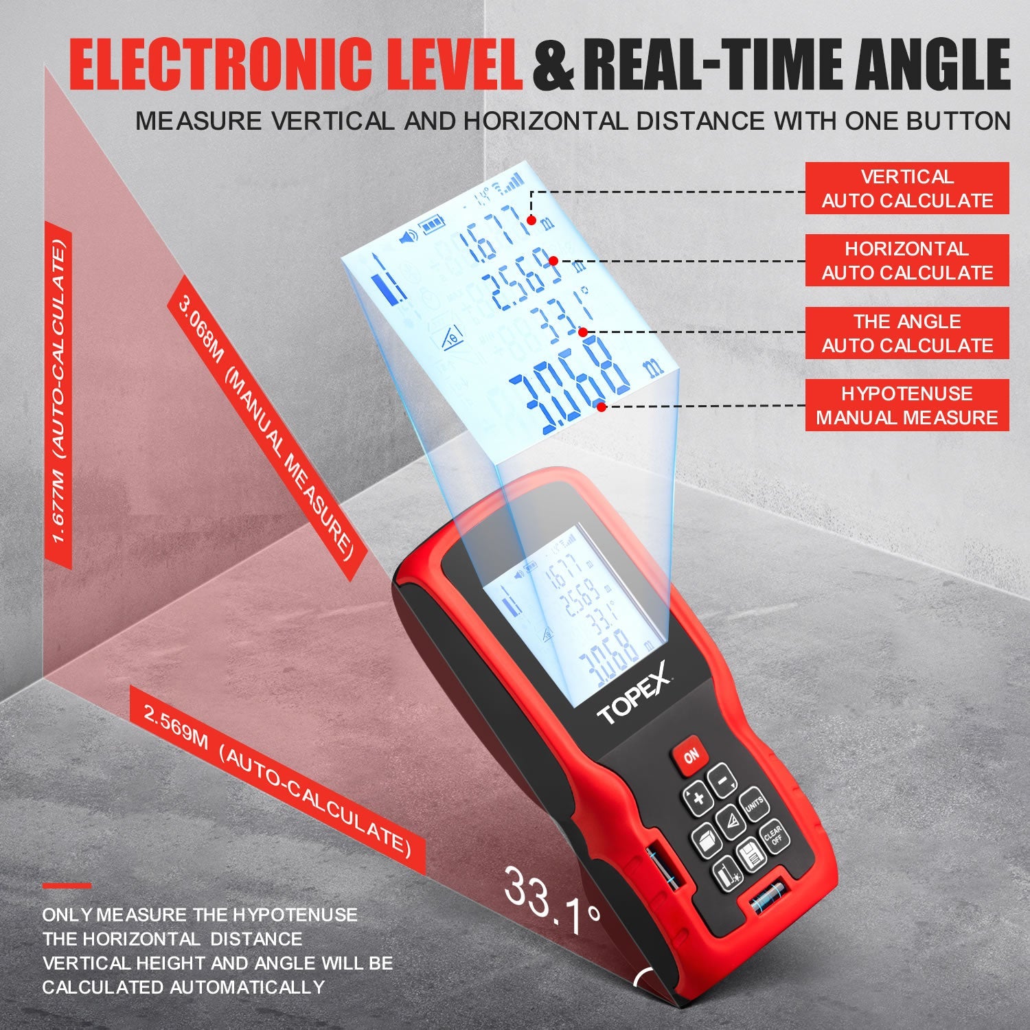 - High Precision: The distance meter has two built-in bubble levels to assist in measurement. Combined with laser precision technology, the accuracy is up to ±2 mm, helping you obtain more accurate data.