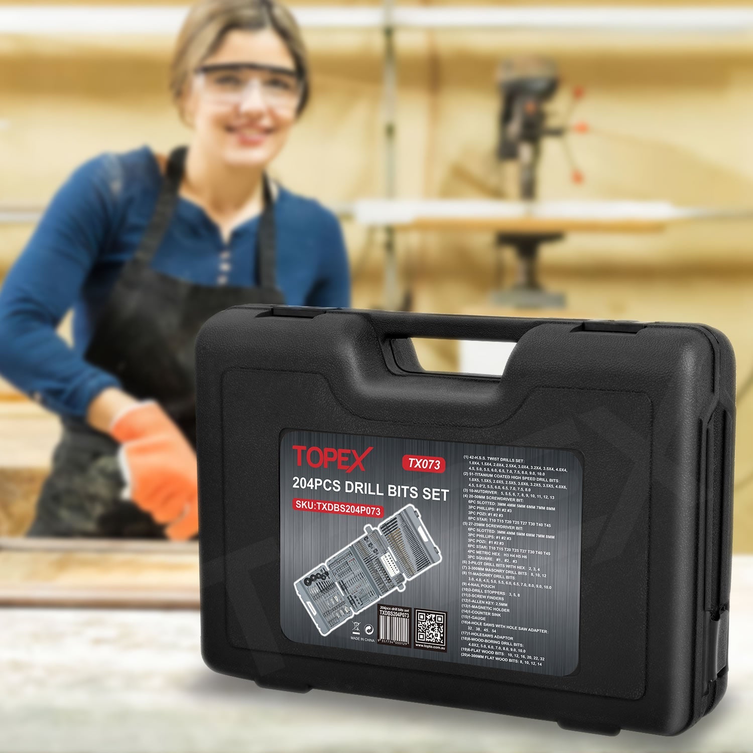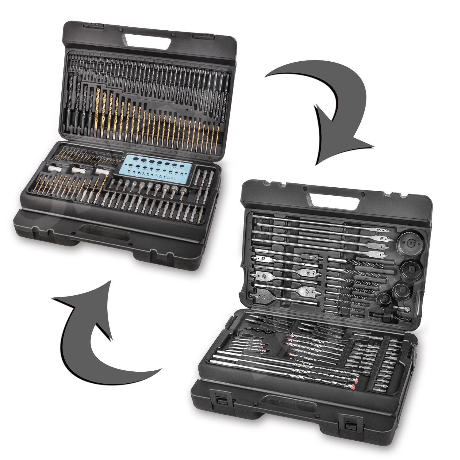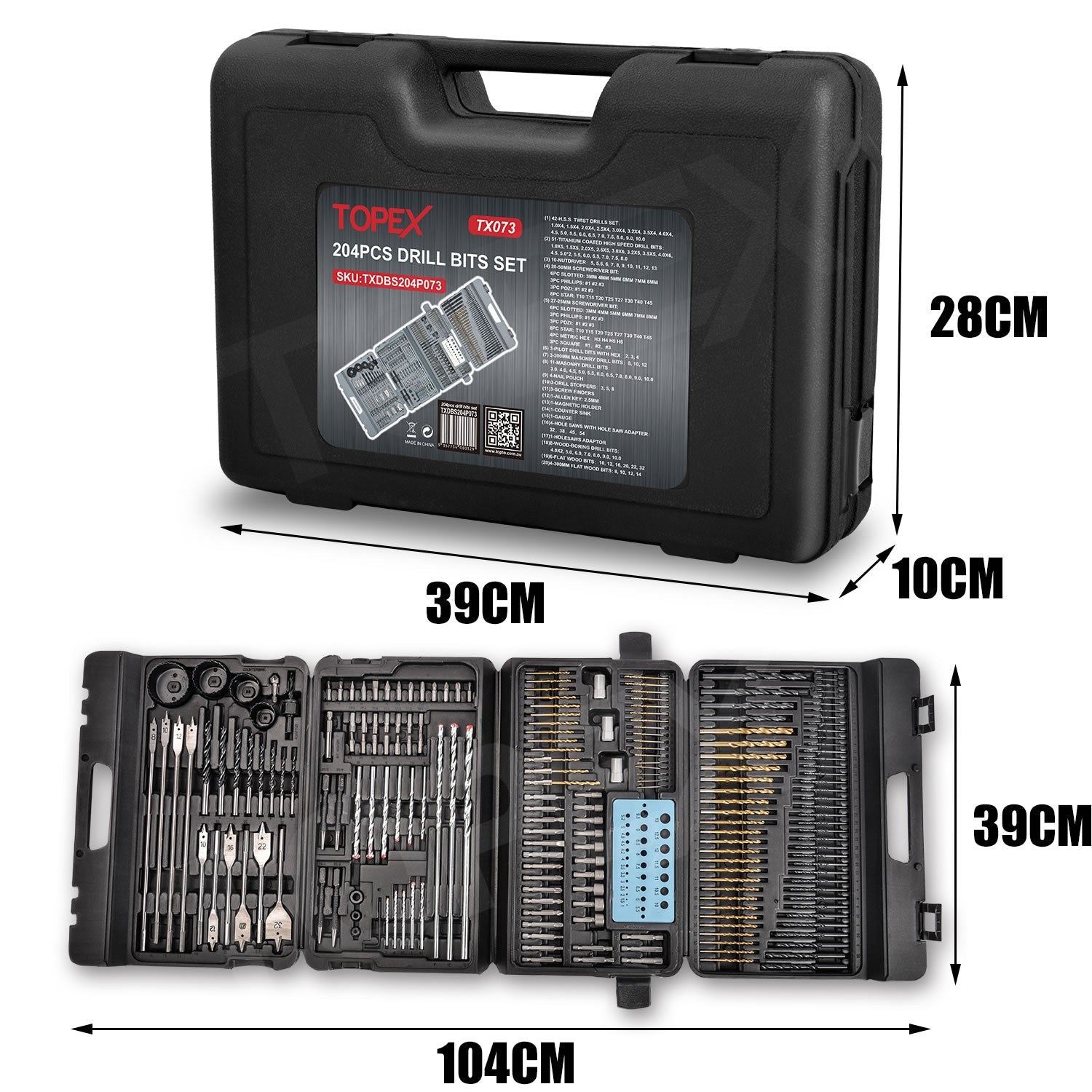 TOPEX 204PC Combination Titanium Drill Bit Set Screw Bits for Metal Wood Masonry