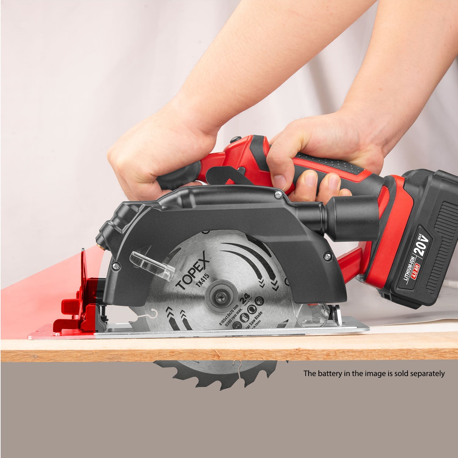 The TOPEX 20V Circular Saw combines the performance of a high-quality 4,300RPM motor and lightweight robust construction. The reliable carbon brush motor delivers all the torque you need for fast, accurate, and consistent cutting. It even comes with a cutting guide, guide notch and laser alignment to triple-check your cuts and measurements. The blade angle is adjustable to 45Degrees and you can adjust the cutting depth to 52 mm without additional tools. The battery circular saw come with a dust port, which can leave your working area free of dust with the dust exhaust pipe. The circular saw is a robust machine and can cut through the hardest woods, and with a blade change, it can cut through metal, ceramic, plastics and more with ease.