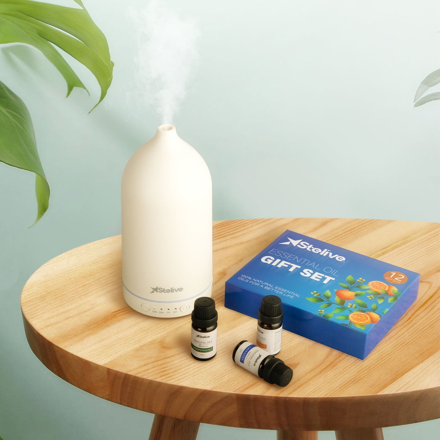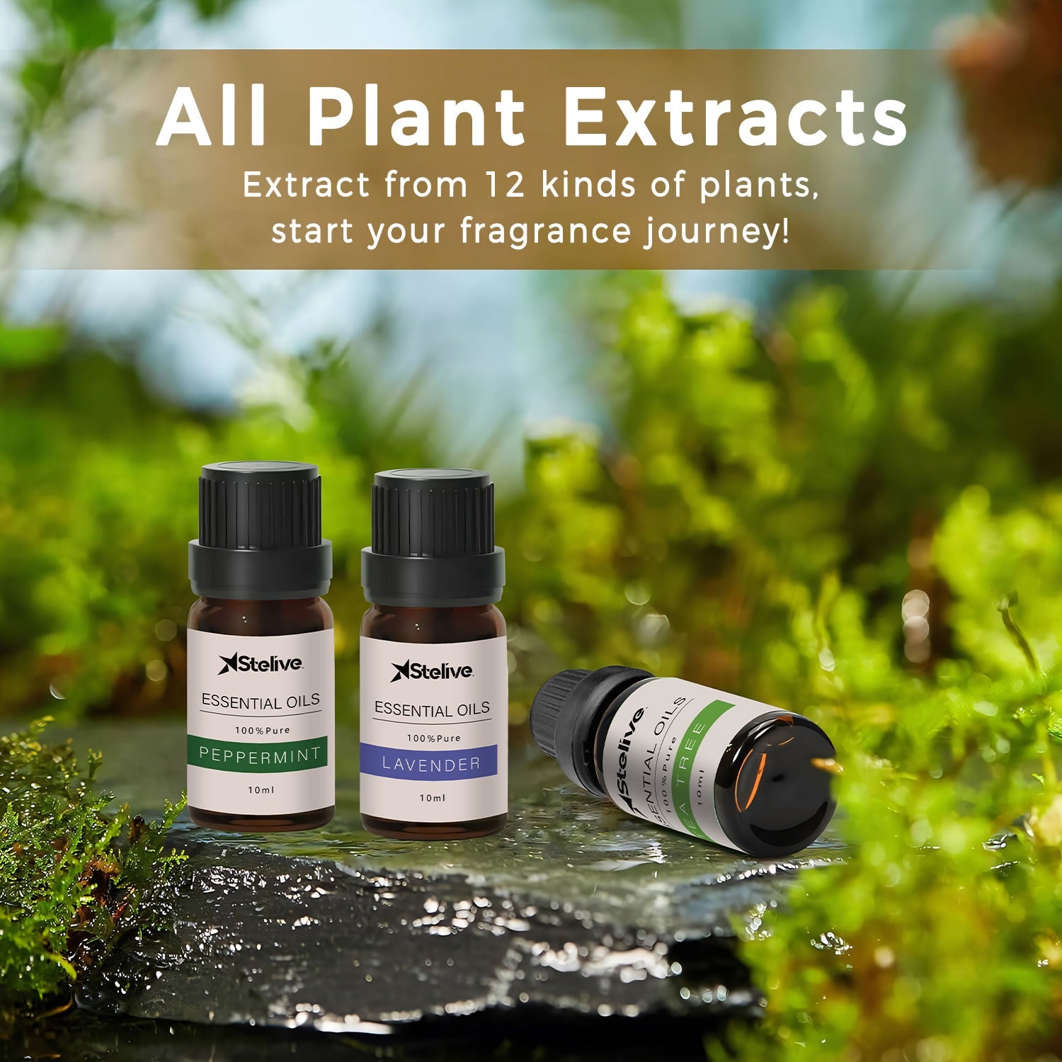 - [12 Different Scents] Stelive Essential Oil Set includes 12 diverse scents like peppermint, lavender, and more, offering a variety of fragrance types.<>[100 Percent Natural] They are extracted from flowers, leaves, stems, roots, or fruits by steam distillation, extrusion and cold soaking, or solvent extraction.<>[Multi-Uses] This set is versatile, ideal for aromatherapy, spa and beauty salons. Simply add a few drops to a diffuser and enjoy the soothing fragrance.<>[High Quality] Each oil comes in a 10ml amber-brown bottle, specially designed to help keep the oils fresh and protect them from light-induced degradation.<>[Gift Set] This 12-in-1 essential oil set, 5ml per bottle, comes in a compact and elegant gift box, making it an ideal present for family and friends.