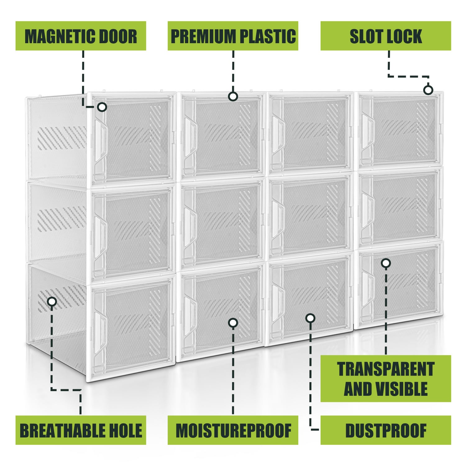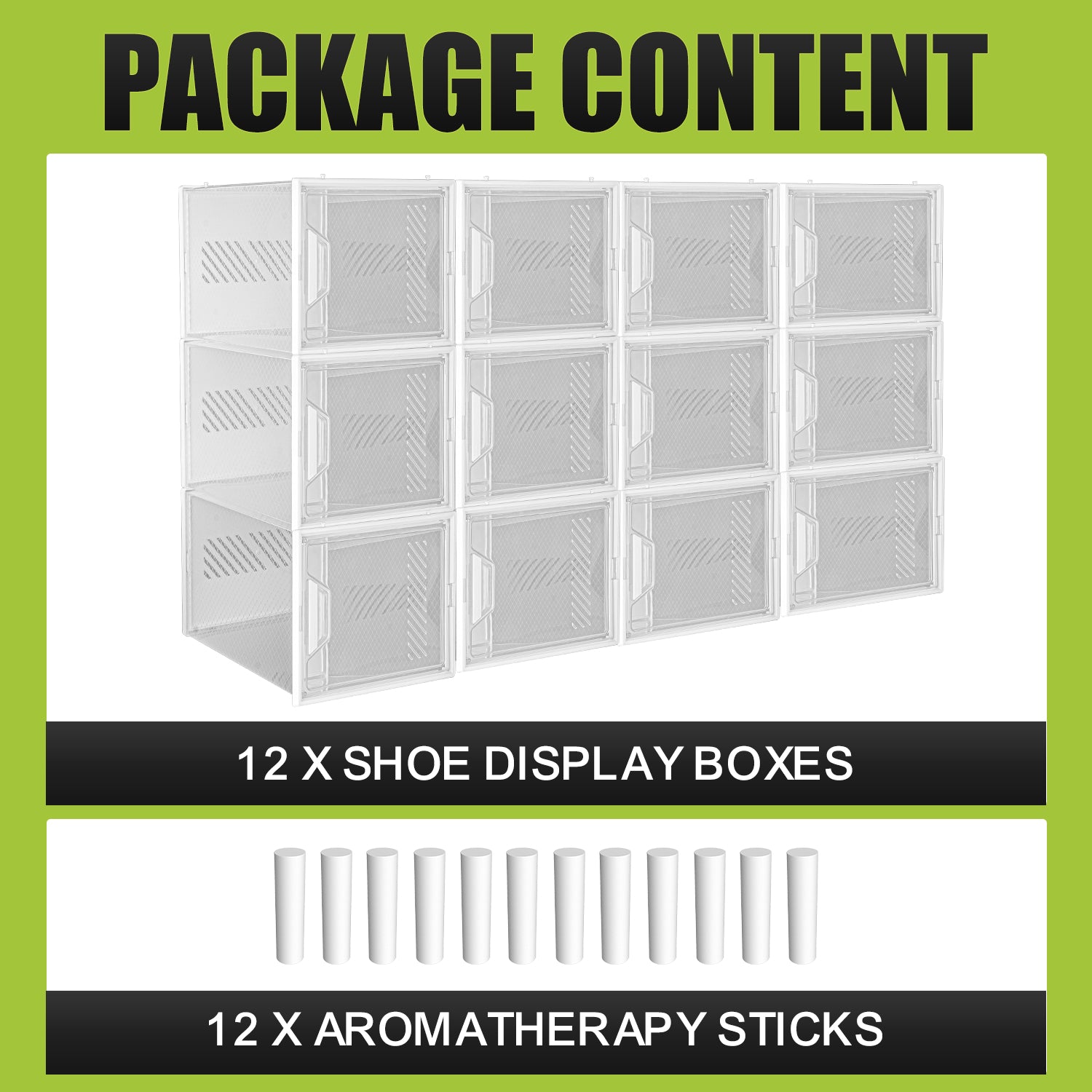 - Stackable Design: 12 large-capacity transparent shoe boxes help maximize your space. You can stack them freely (up and down) as needed, not easy to tip over and easy to clean.