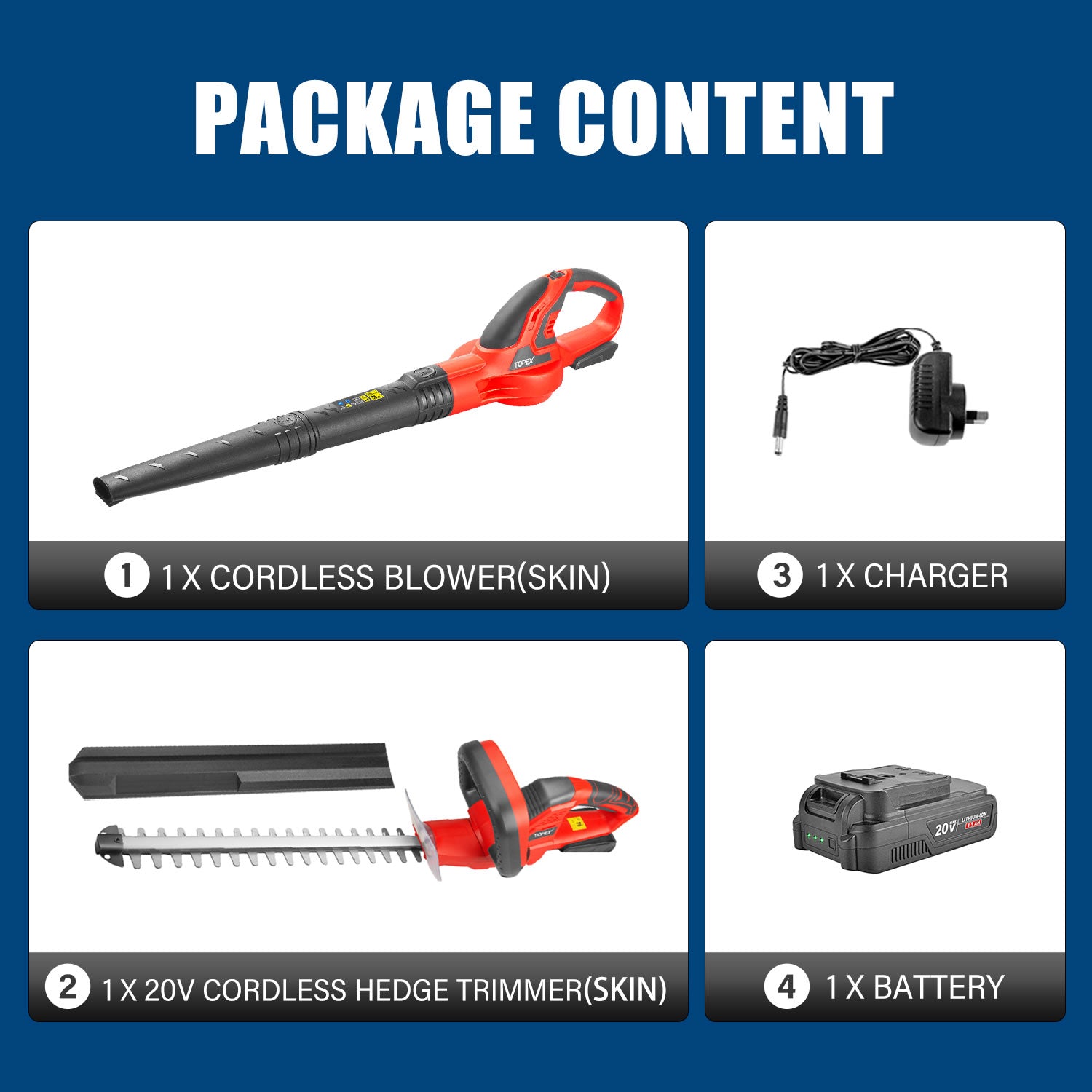 TOPEX 20V Cordless Blower and Hedge Trimmer Combo Kit w/ Battery