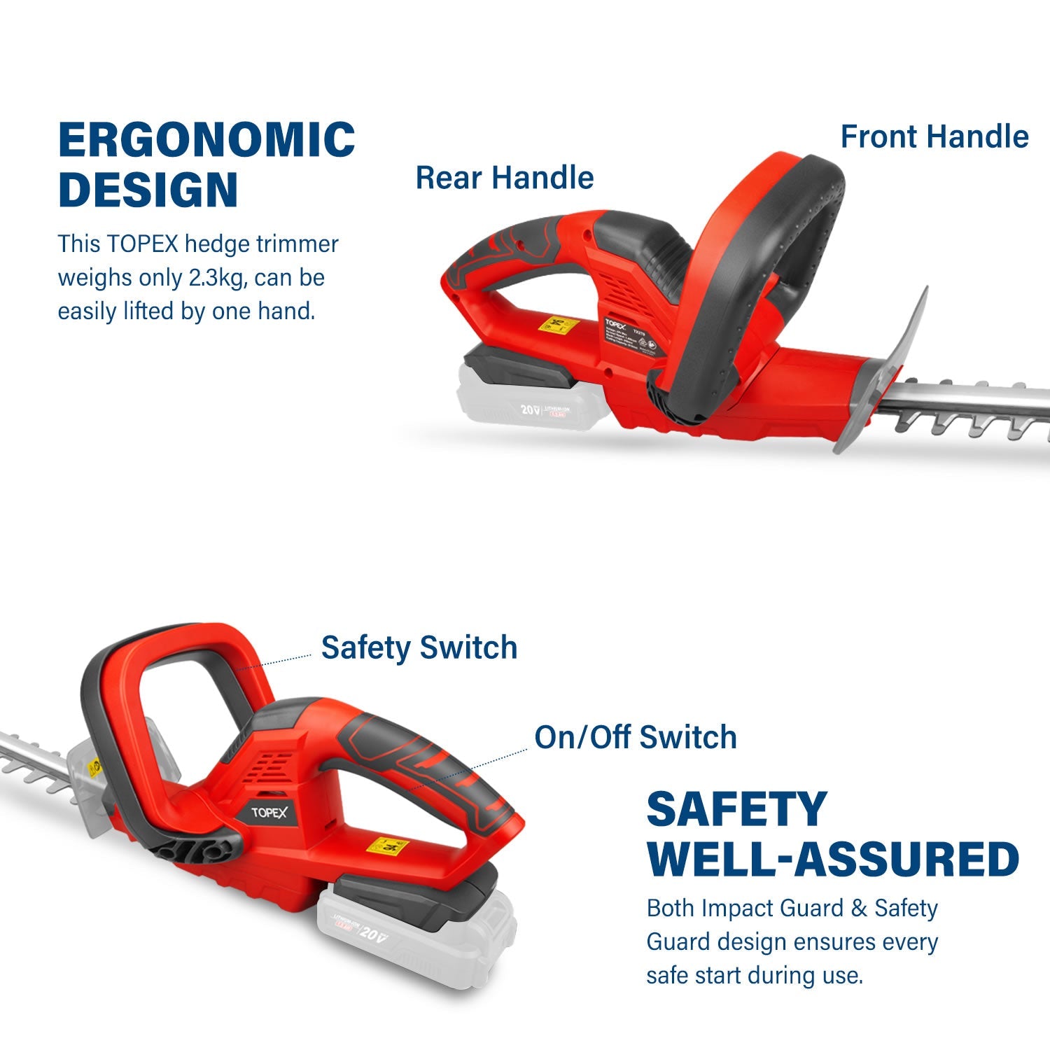 • [Safety Well-assured] Both Impact Guard &Safety Guard design ensures every safe start during use. A blade cover is additionally provided to protect you from accidental injury caused by sharp blades, allowing safe storage after each use.