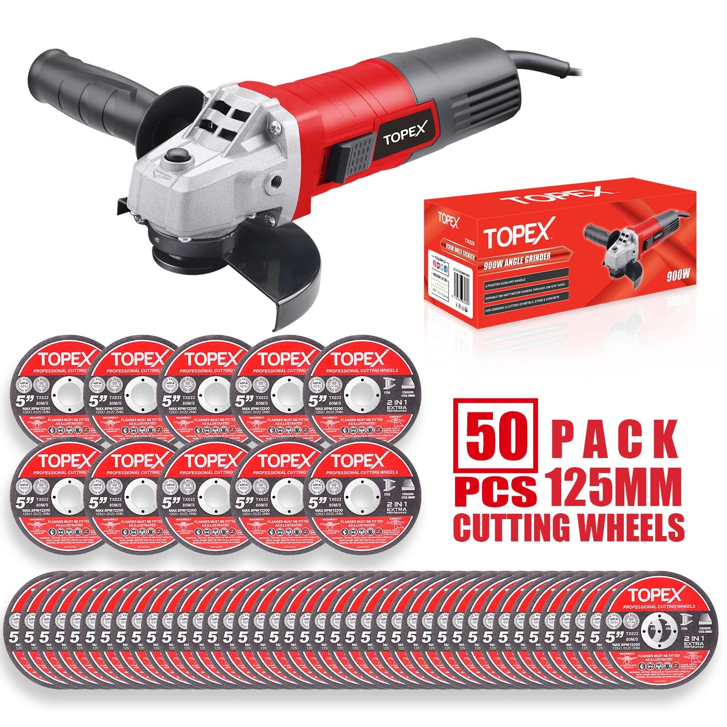 The Topex 5± Angle Grinder removes casting fin, finishes various types of steel, bronze and aluminium materials and castings, grinds welded sections, sections cut by means of an acetylene torch, synthetic resins, slate, brick and marble. With its small grip diameter, high output power and overload durability, it delivers great performance.